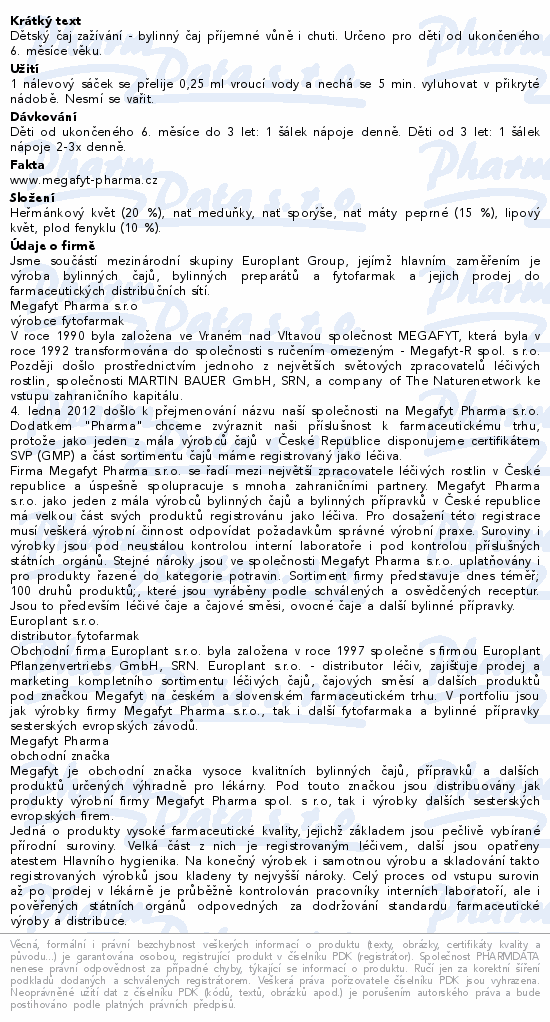 | Výrobce: | MEGAFYT PHARMA S.R.O. , VRANÉ NAD VLTAVOU |