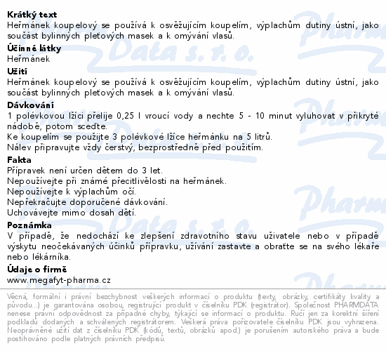 | Výrobce: | MEGAFYT PHARMA S.R.O. , VRANÉ NAD VLTAVOU |