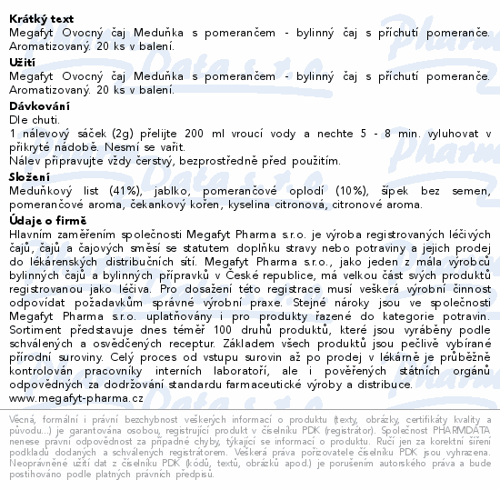 Megafyt Ovocný čaj Meduňka s pomerančem - bylinný čaj s příchutí pomeranče. Aromatizovaný. 20 ks v balení.
