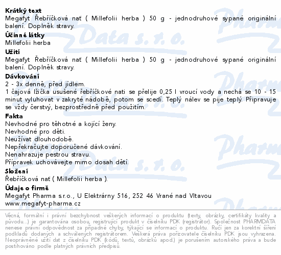 Megafyt Řebříčková nať ( Millefolii herba ) 50 g - jednodruhové sypané originální balení. Doplněk stravy.