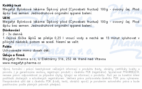 Megafyt Bylinková lékárna Šípkový plod (Cynosbati fructus) 100g - ovocný čaj. Plod šípku bez semen. Jednodruhové originální sypané balení.