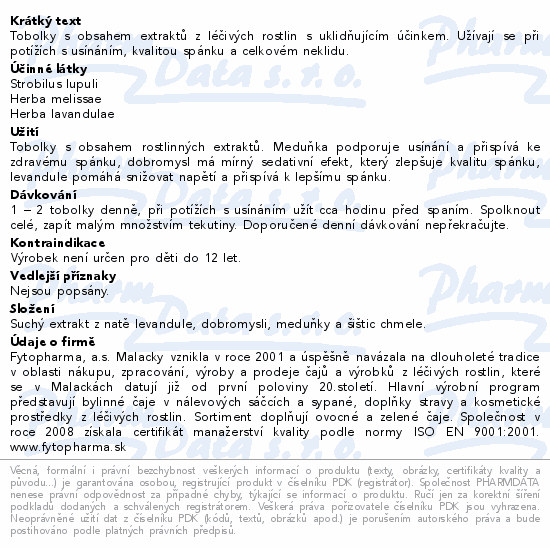 Tobolky s obsahem extraktů z léčivých rostlin s uklidňujícím účinkem. Užívají se při potížích s usínáním, kvalitou spánku a celkovém neklidu.