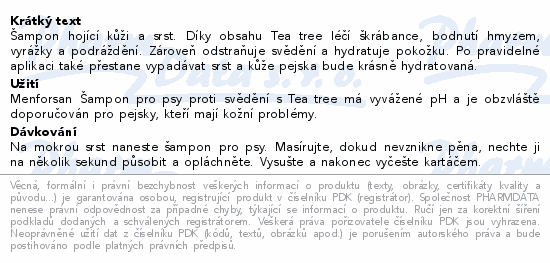 Menforsan Šampon s TTO proti svědění pro psy 300ml