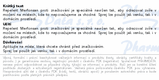 Repelent Merfonsan proti značkování je speciálně navržen tak, aby odrazoval zvíře v močení na místech, kde to nepovažujeme za vhodné. Sprej lze použít jak venku, tak i v domácím prostředí.
