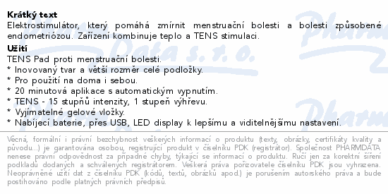 Elektrostimulátor, který pomáhá zmírnit menstruační bolesti a bolesti způsobené endometriózou. Zařízení kombinuje teplo a TENS stimulaci.