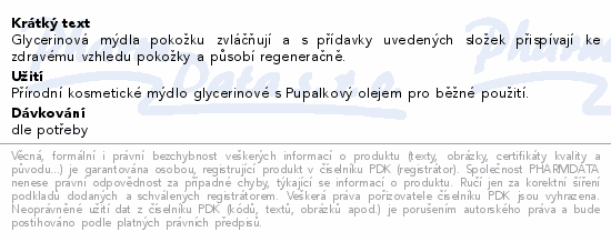 Glycerinová mýdla pokožku zvláčňují a s přídavky uvedených složek přispívají ke zdravému vzhledu pokožky a působí regeneračně.