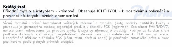 Přírodní mýdlo s ichtyolem - krémové. Obsahuje ICHTHYOL - k pozitivnímu ovlivnění a prevenci některých kožních onemocnění.