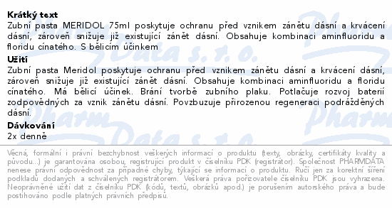 Zubní pasta MERIDOL 75ml poskytuje ochranu před vznikem zánětu dásní a krvácení dásní, zároveň snižuje již existující zánět dásní. Obsahuje kombinaci aminfluoridu a floridu cínatého. S bělicím účinkem