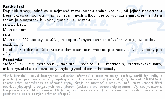 Methionin 500 tbl.100 Fagron
