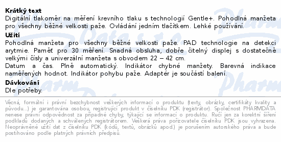 Digitální tlakoměr na měření krevního tlaku s technologií Gentle+. Pohodlná manžeta pro všechny běžné velkosti paže. Ovládání jedním tlačítkem. Lehké používání.