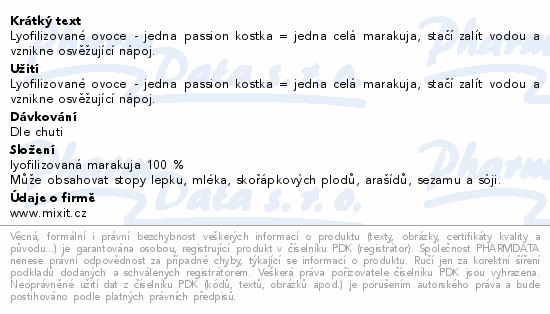 Lyofilizované ovoce - jedna passion kostka = jedna celá marakuja, stačí zalít vodou a vznikne osvěžující nápoj.