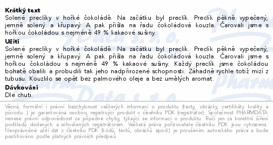 Solené preclíky v hořké čokoládě. Na začátku byl preclík. Preclík pěkně vypečený, jemně solený a křupavý. A pak přišla na řadu čokoládová kouzla. Čarovali jsme s hořkou čokoládou s nejméně 49 % kakaové sušiny.