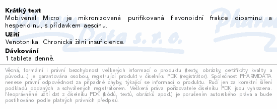Mobivenal Micro je mikronizovaná purifikovaná flavonoidní frakce diosminu a hesperidinu, s přídavkem aescinu.