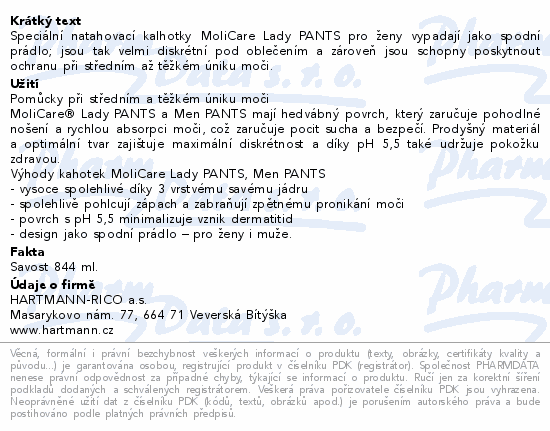 Speciální natahovací kalhotky MoliCare Lady PANTS pro ženy vypadají jako spodní prádlo; jsou tak velmi diskrétní pod oblečením a zároveň jsou schopny poskytnout ochranu při středním až těžkém úniku moči.