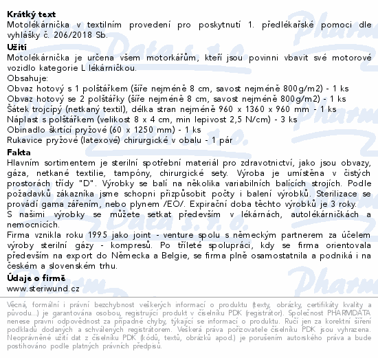 Motolékárnička textil vyhl.č.206/2018 Steriwund