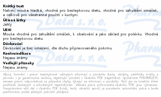 Nativní mouka hladká, vhodná pro bezlepkovou dietu, vhodná pro zahuštění omáček, a celkově pro všestranné použití v kuchyni.