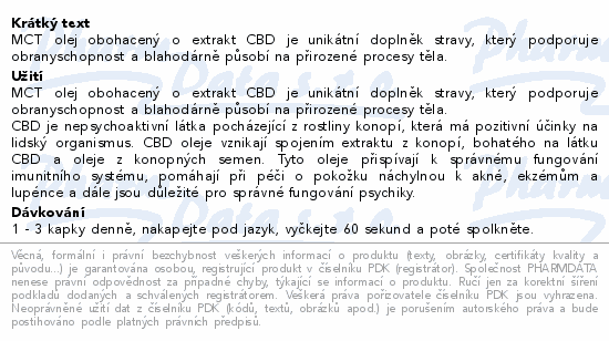 MCT olej obohacený o extrakt CBD je unikátní doplněk stravy, který podporuje obranyschopnost a blahodárně působí na přirozené procesy těla.