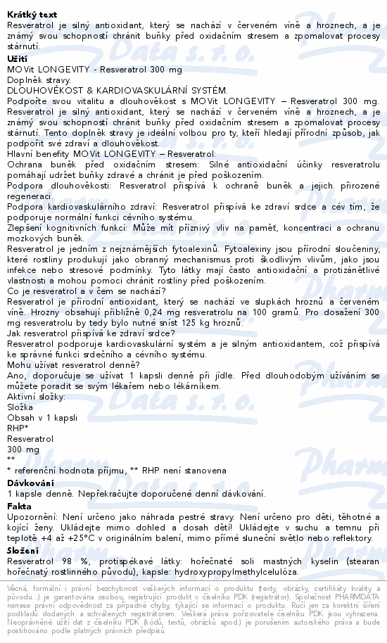 MOVit Longevity RESVERATROL 300mg cps.60