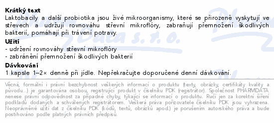 Laktobacily a další probiotika jsou živé mikroorganismy, které se přirozeně vyskytují ve střevech a udržují rovnováhu střevní mikroflóry, zabraňují přemnožení škodlivých bakterií, pomáhají při trávení potravy.