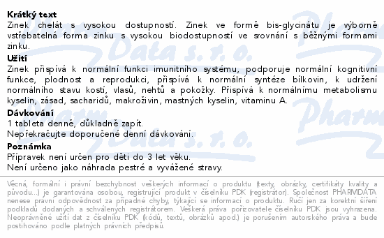 Zinek chelát s vysokou dostupností. Zinek ve formě bis-glycinátu je výborně vstřebatelná forma zinku s vysokou biodostupností ve srovnání s běžnými formami zinku.