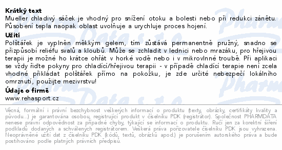 Mueller chladivý sáček je vhodný pro snížení otoku a bolesti nebo při redukci zánětu. Působení tepla naopak oblast uvolňuje a urychluje proces hojení.