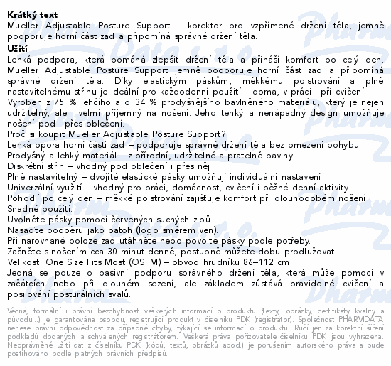 Mueller Adjustable Posture Support - korektor pro vzpřímené držení těla, jemně podporuje horní část zad a připomíná správné držení těla.