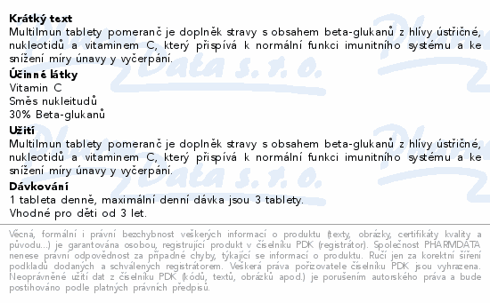 MultiImun tablety pomeranč je doplněk stravy s obsahem beta-glukanů z hlívy ústřičné, nukleotidů a vitaminem C, který přispívá k normální funkci imunitního systému a ke snížení míry únavy y vyčerpání.