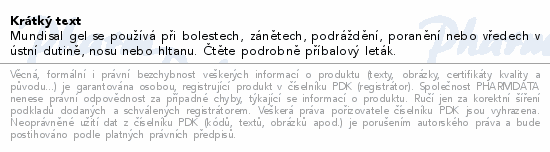 Mundisal gel se používá při bolestech, zánětech, podráždění, poranění nebo vředech v ústní dutině, nosu nebo hltanu. Čtěte pozorně příbalový leták.