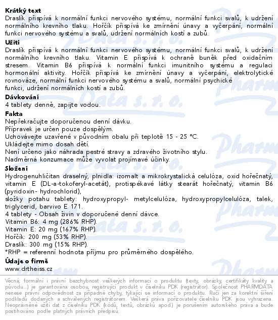 Draslík přispívá k normální funkci nervového systému, normální funkci svalů, k udržení normálního krevního tlaku. Hořčík přispívá ke zmírnění únavy a vyčerpání, normální funkci nervového systému a svalů, udržení normálních kostí a zubů.