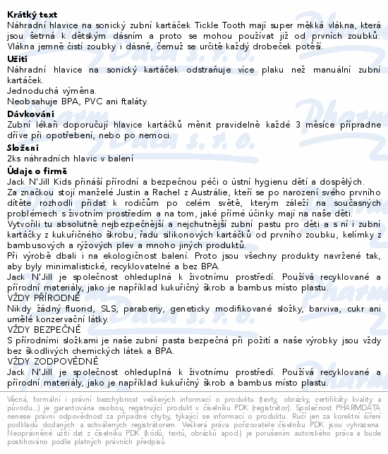 Náhradní hlavice na sonický kar.Tickle 0-6let 2ks