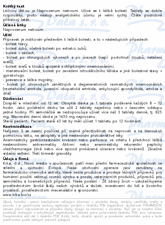 Léčivou látkou je Naproxenum natricum. Uživá se k léčbě bolesti. Tablety se dobře rozpouštějí, proto nástup analgetického účinku je velmi rychlý. Čtěte pozorně příbalový leták.