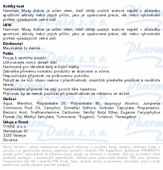 Namman Muay Active je určen všem, kteří chtějí uvolnit svalové napětí v důsledku sportovní aktivity nebo jiných příčin, jako je opakovaná práce, věk nebo vykonávání profesí vyžadujících velké úsilí.