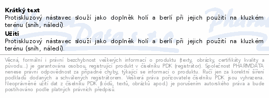 Protiskluzový nástavec slouží jako doplněk holí a berlí při jejich použití na kluzkém terénu (sníh, náledí).