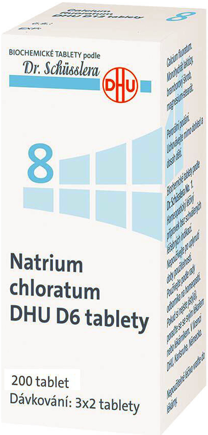 Homeopatický léčivý přípravek bez schválených léčebných indikací. Biochemické tablety podle Dr. Schüsslera No. 8. Čtěte pozorně příbalový leták.
