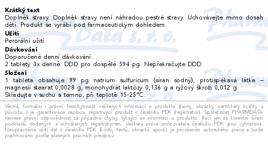 Doplněk stravy. Doplněk stravy není náhradou pestré stravy. Uchovávejte mimo dosah dětí. Produkt se vyrábí pod farmaceutickým dohledem.
