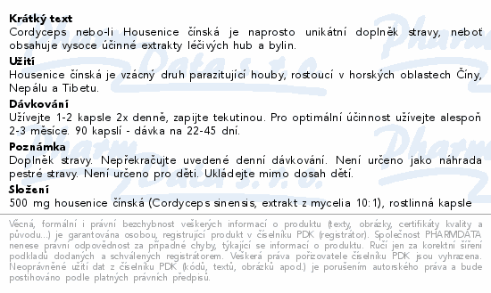 Cordyceps nebo-li Housenice čínská je naprosto unikátní doplněk stravy, neboť obsahuje vysoce účinné extrakty léčivých hub a bylin.