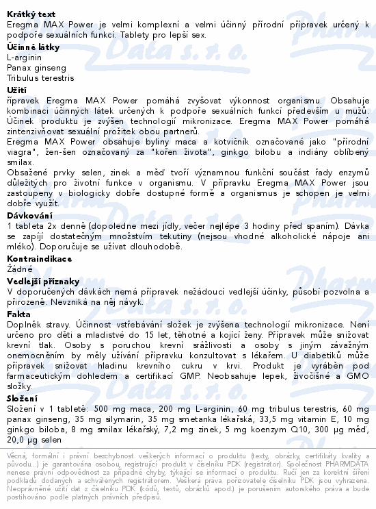 Eregma MAX Power je velmi komplexní a velmi účinný přírodní přípravek určený k podpoře sexuálních funkcí. Tablety pro lepší sex.