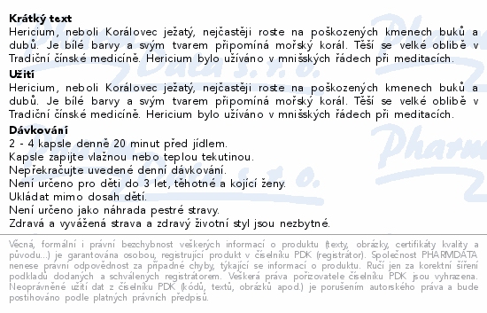 Hericium, neboli Korálovec ježatý, nejčastěji roste na poškozených kmenech buků a dubů. Je bílé barvy a svým tvarem připomíná mořský korál. Těší se velké oblibě v Tradiční čínské medicíně. Hericium bylo užíváno v mnišských řádech při meditacích.