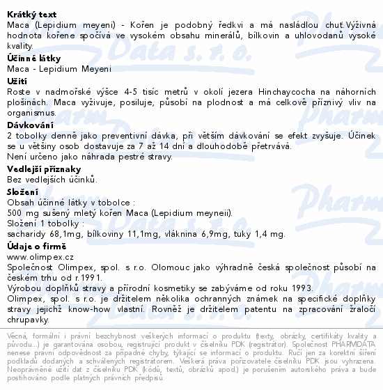 Maca (Lepidium meyeni) - Kořen je podobný ředkvi a má nasládlou chuť.Výživná hodnota kořene spočívá ve vysokém obsahu minerálů, bílkovin a uhlovodanů vysoké kvality.