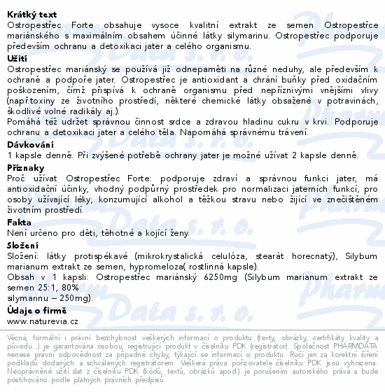 Přípravek obsahuje extrakt ze semen Ostropestřce mariánského s nadstandardně vysokým obsahem účinné látky silymarinu – patří k nejsilnějším na trhu.