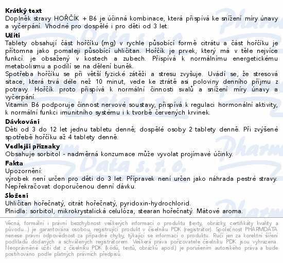 Doplněk stravy HOŘČÍK + B6 je účinná kombinace, která přispívá ke snížení míry únavy a vyčerpání. Vhodné pro dospělé i pro děti od 3 let.