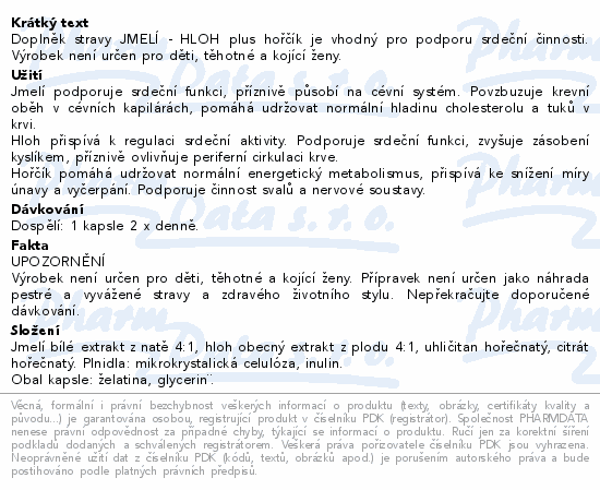 Doplněk stravy JMELÍ - HLOH plus hořčík je vhodný pro podporu srdeční činnosti. Výrobek není určen pro děti, těhotné a kojící ženy.
