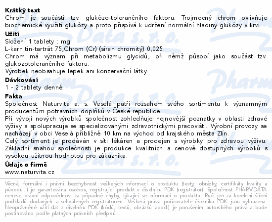 Chrom je součástí tzv. glukózo-tolerančního faktoru. Trojmocný chrom ovlivňuje biochemické využití glukózy a proto přispívá k udržení normální hladiny glukózy v krvi.