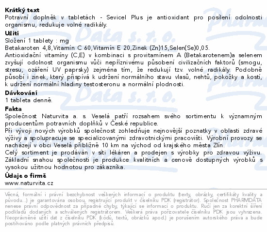 Potravní doplněk v tabletách - Sevicel Plus je antioxidant pro posílení odolnosti organismu, redukuje volné radikály.