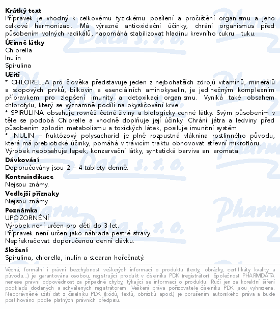 Přípravek je vhodný k celkovému fyzickému posílení a pročištění organismu a jeho celkové harmonizaci. Má výrazné antioxidační účinky, chrání organismus před působením volných radikálů, napomáhá stabilizovat hladinu krevního cukru i tuku.