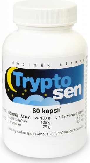 Doplněk stravy pro lepší usínání - 60 želatinových kapslí. Každá kapsle obsahuje 25 mg kozlíku lékařského ve formě koncentrovaného extraktu 20:1 - odpovídá 500 mg sušeného kořene a 300 mg L-tryptofanu.