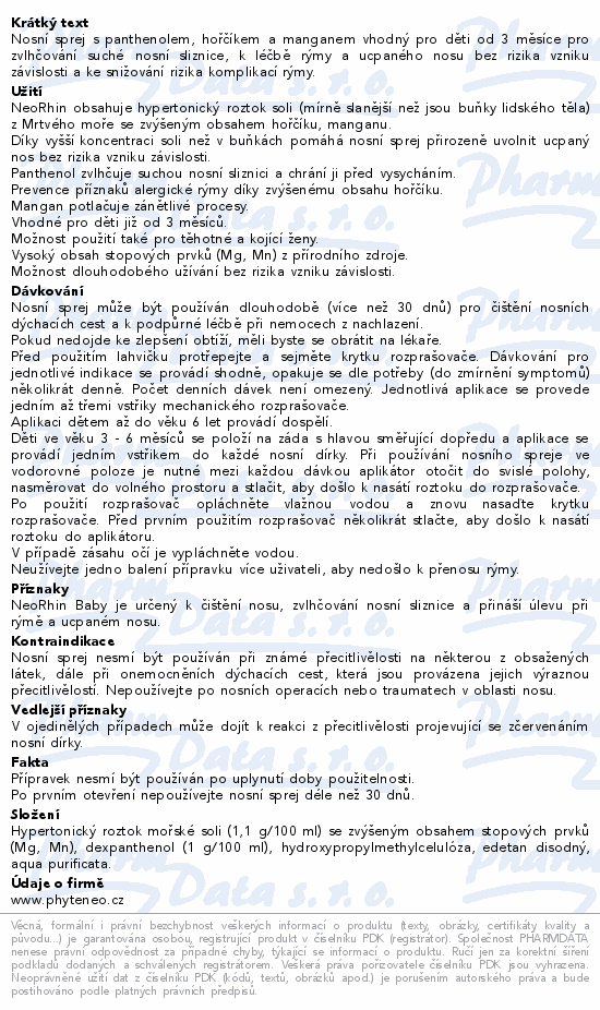 Nosní sprej s panthenolem, hořčíkem a manganem vhodný pro děti od 3 měsíce pro zvlhčování suché nosní sliznice, k léčbě rýmy a ucpaného nosu bez rizika vzniku závislosti a ke snižování rizika komplikací rýmy.