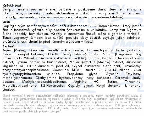Šampon určený pro namáhané, barvené a poškozené vlasy, který jemně čistí a intenzivně vyživuje díky obsahu fytokeratinu a unikátnímu komplexu Signature Blend (peptidy, hemiskvalan, výtažky z kustovnice čínské, slézu a gardénie tahitské).