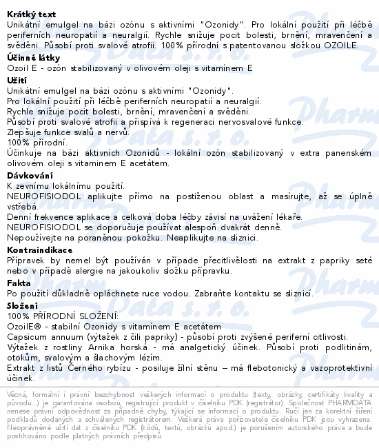 Unikátní emulgel na bázi ozónu s aktivními "Ozonidy". Pro lokální použití při léčbě periferních neuropatií a neuralgií. Rychle snižuje pocit bolesti, brnění, mravenčení a svěděni. Působí proti svalové atrofii. 100% přírodní s patentovanou složkou OZOILE.