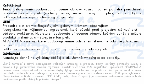 Tento gelový krém podporou přirozené obnovy kožních buněk pomáhá předcházet projevům stárnutí pleti (suchá pokožka, nerovnoměrný tón pleti, jemné linky) a odhaluje tak zářivější a zdravě vypadající pleť.